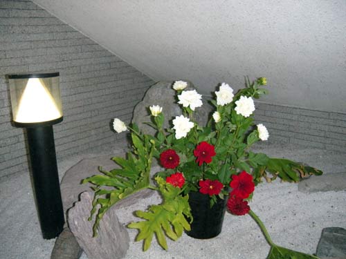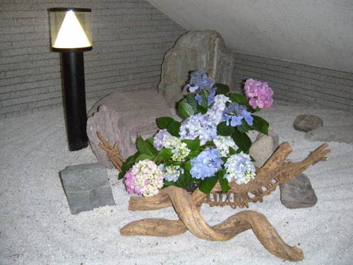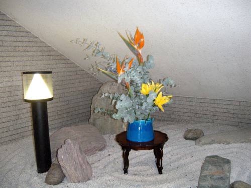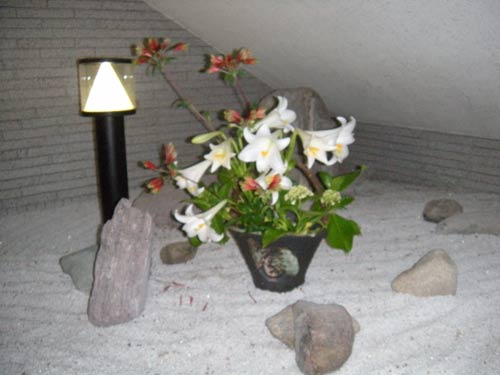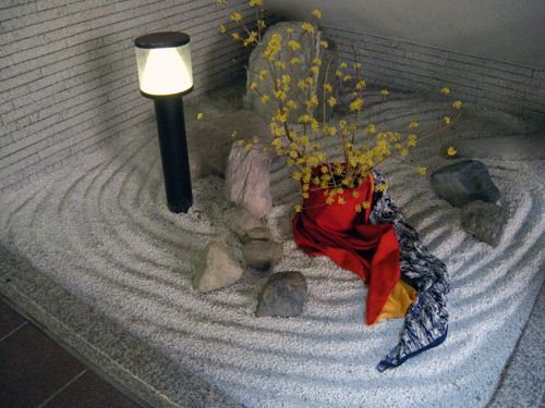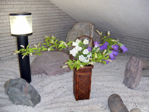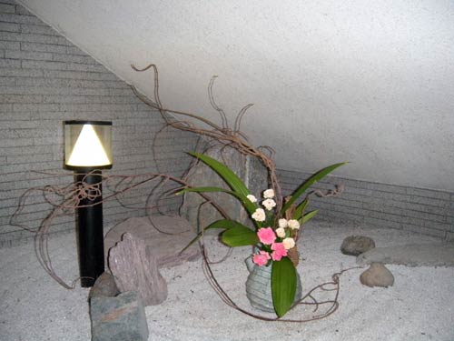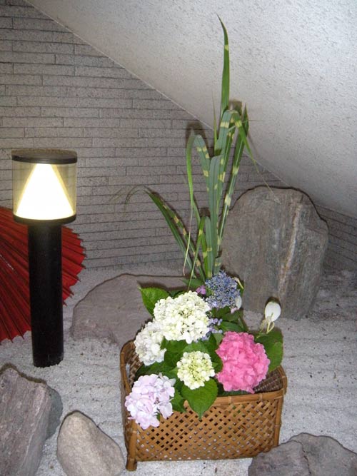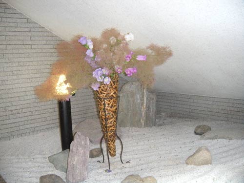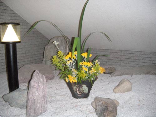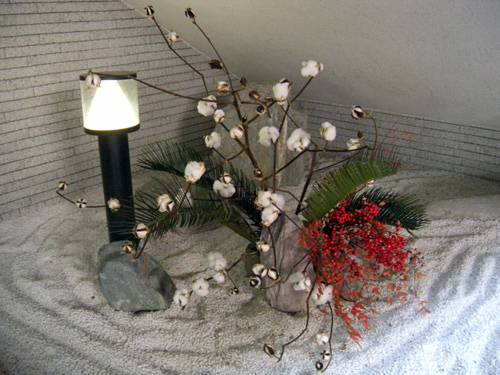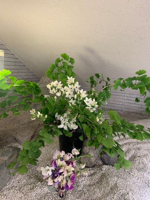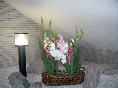 花輪舞(はなろんど)さん 作品のページ、花輪舞さんは、カリエンテ山口エントランスの一画を利用してボランティアで花を生けていただいています。
